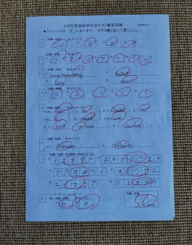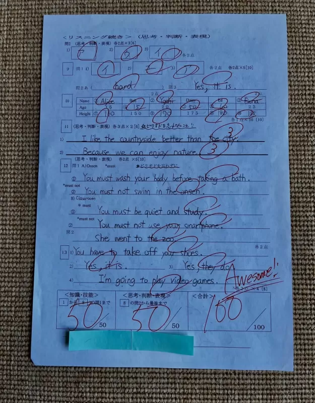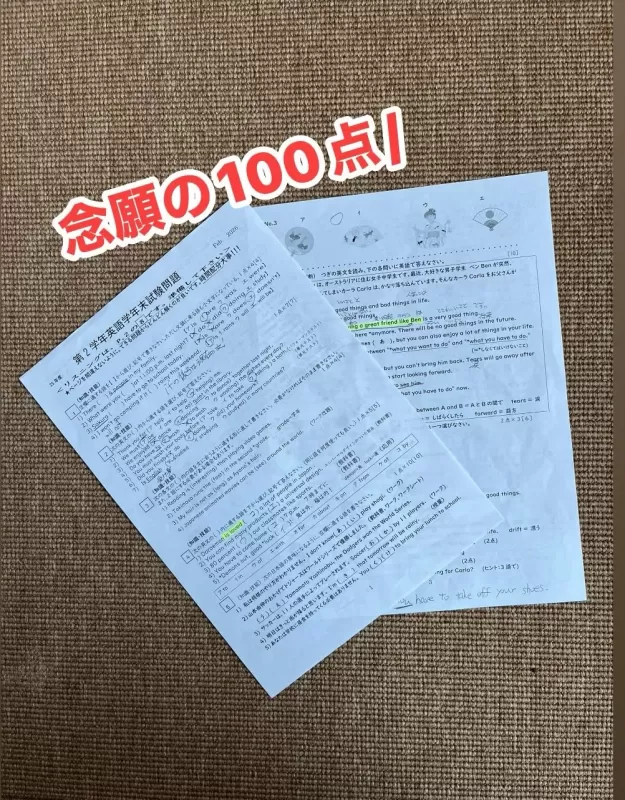 エーデルでは定期テストで満点を取る生徒さんが多くいます。いつもいつも、ちょっとしたケアレスミスで98点や99点だった中2の生徒さんが念願の満点を取りました!