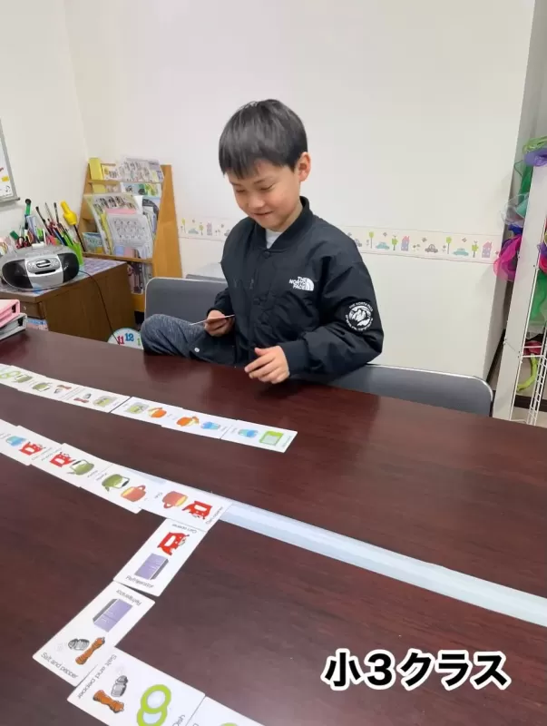「あった!」「こっちだよ!」と、みんな身を乗り出して白熱したバトルを繰り広げていました。楽しみながら学ぶ。これが英語を好きになる一番の近道ですね。